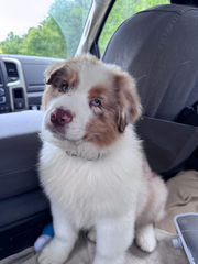 Maximus, or 'Max', is an incredible boy from Sky Creek Aussies in Missouri. With his cheerful and focused personality, Maximus is very intelligent and has been a breeze to train. Once he grasps a command, he jumps right in! He enjoys playing with his fellow dogs and loves to sprint at full speed. We've started showing him in conformation, and he has done very well in the show arena. I have no doubt he'll achieve his Champion title in the near future!